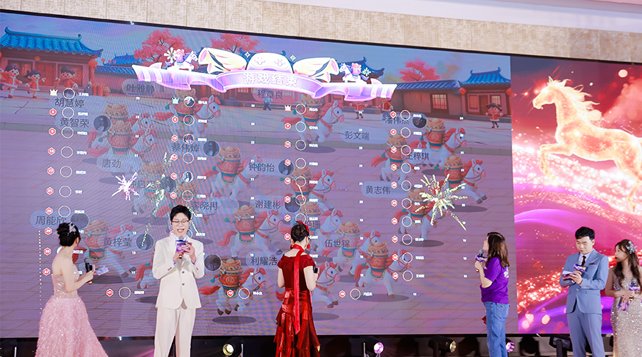 联邦快递广佛年会逾千名员工几乎全员参与。游戏环节,会场充满欢声笑语与加油助威声,大屏幕上的激烈战况引发现场阵阵惊呼。抽奖环节,炫光动画配合紧张的音效,成功营造出万众期待的激动时刻。活动不仅增强了晚会的娱乐性与科技感,更在团队中创造了强烈的共同体验与新年记忆。