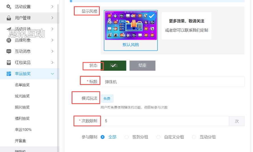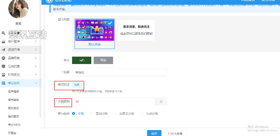 1.登录后台后找到幸运抽奖板块,找到“弹珠机”,打开设置;