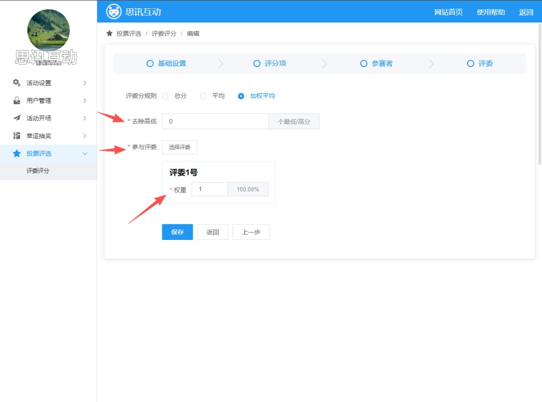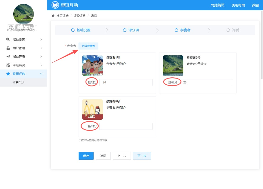 b.评委&基础:由评委评分和基础分(基础分在第三步添加参赛者时设置)组成