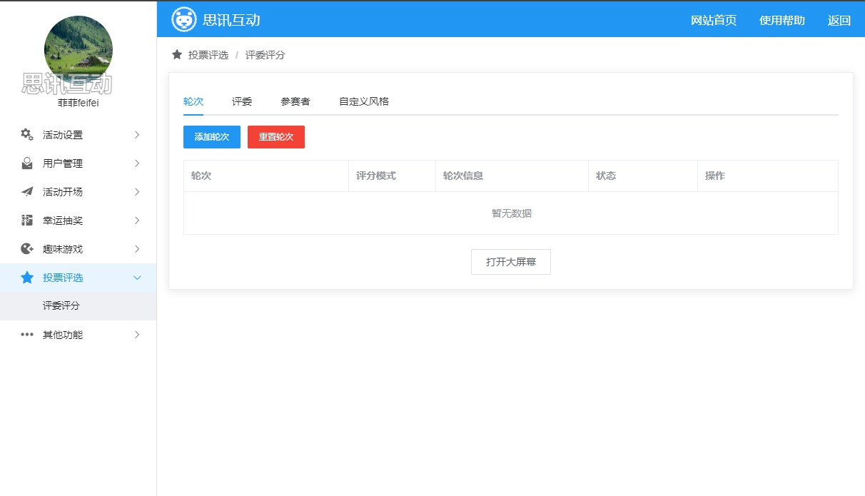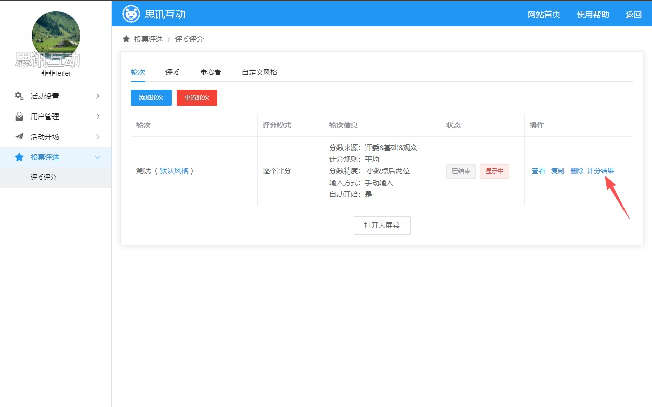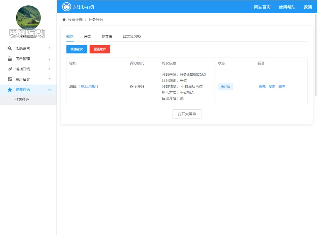 (2)打开大屏幕按钮可进入大屏幕界面,点击大屏幕开始评分即可开始评分。