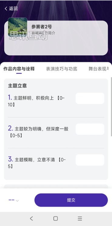 c.评委&观众:评委和观众都可以进行评分(评委进入评委入口扫码评分,观众现场大屏幕扫码评分)。