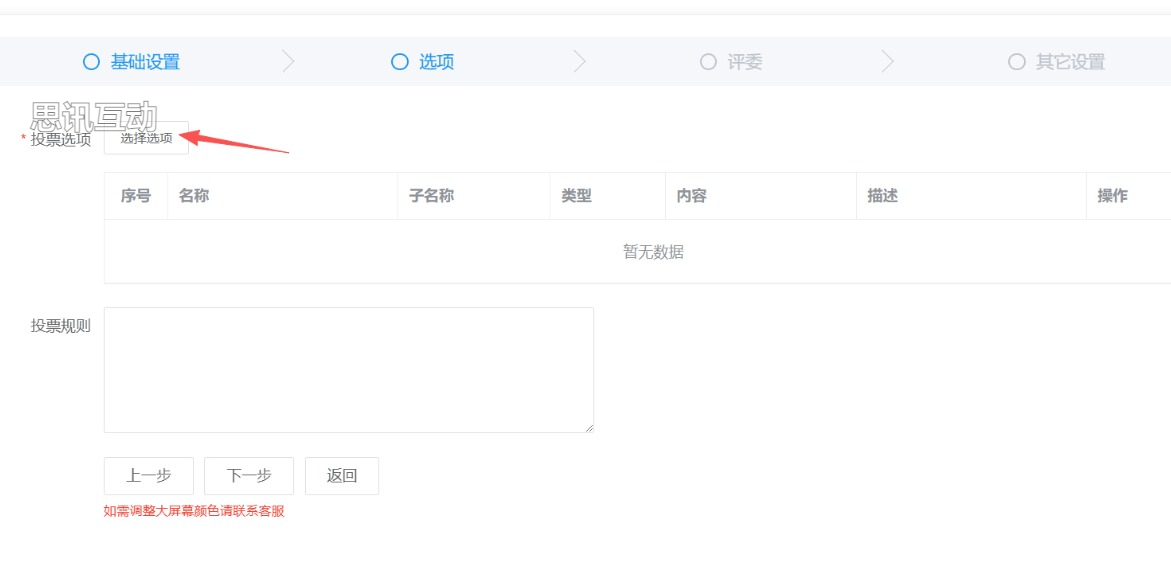 (7)添加好选项后,有投票规则也可以自定义,手机端会提示,设置完点击下一步;如图11