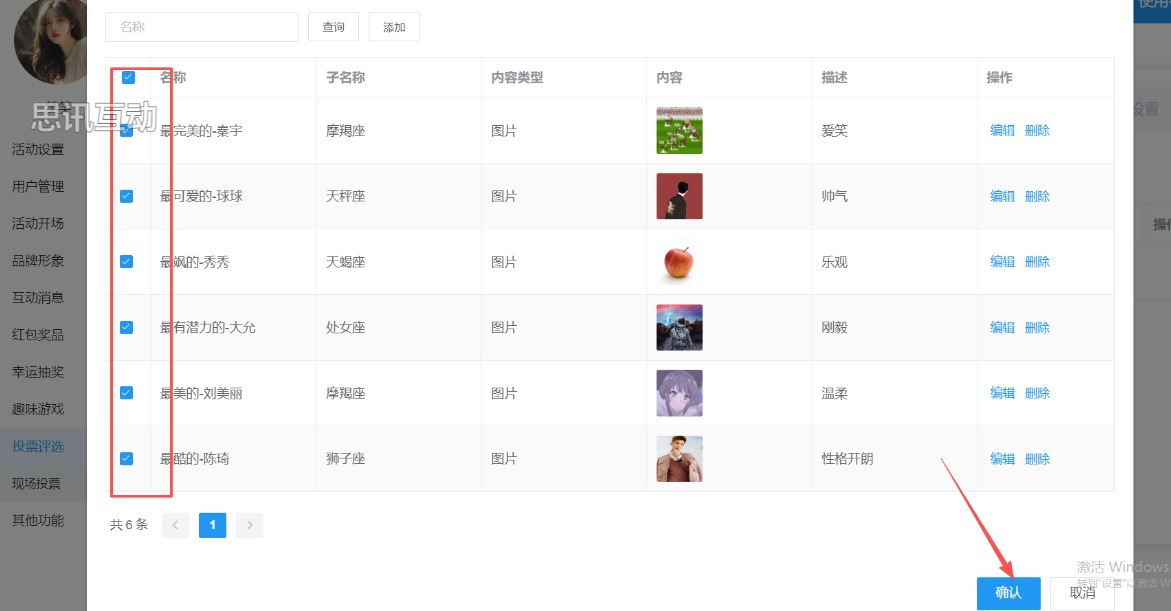 保存后再添加的选项里选择需要勾选被投票的选项,点击确认。如图10