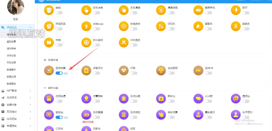 (1)进入后台后功能去找到现场投票,打开设置,进入投票功能设置界面,如图1。
