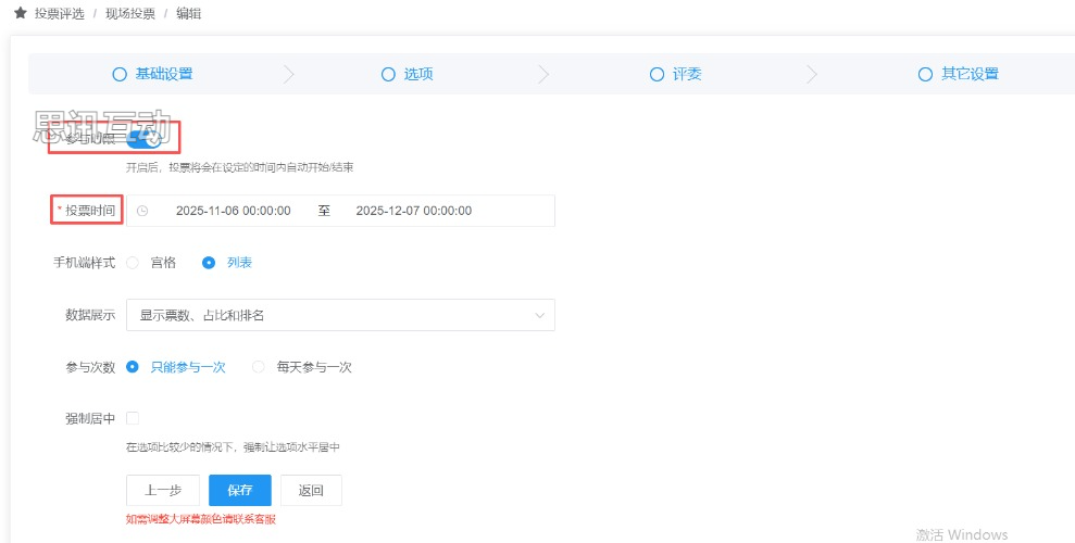 (9)参与时限:开启后,可设置投票时间,投票会在设定的时间内自动开始/结束,如图13;