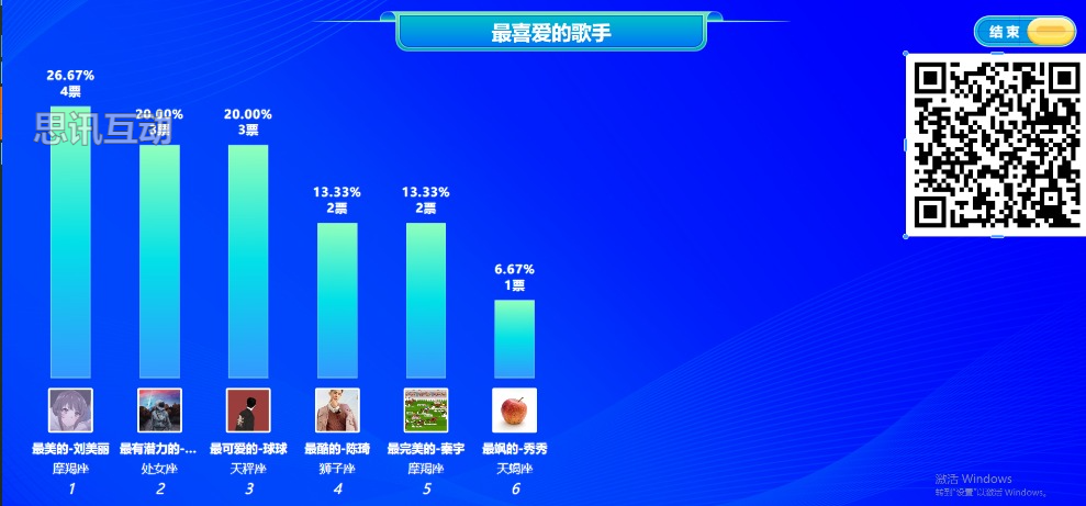 (1)进入大屏幕界面后,按alt+q显示二维码,观众扫码进入;点击大屏幕按空格开始可开始投票/结束,如图19。