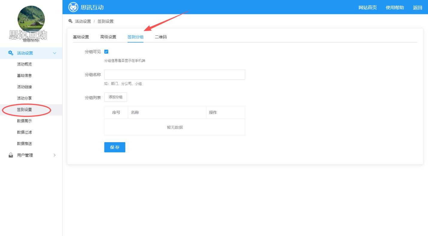 点击签到分组选项卡进入签到分组界面。签到分组功能详细教程