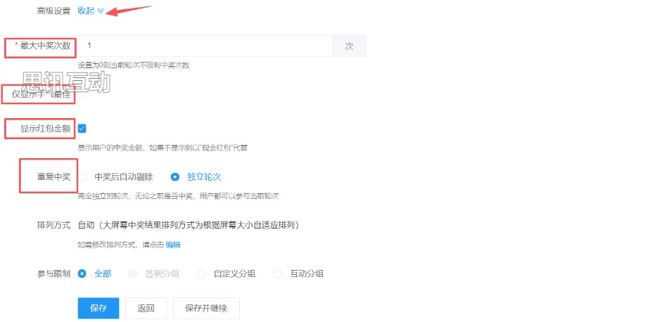 (5)高级设置中设置好单个用户最大中奖的次数(设置为0,则不限次数)。