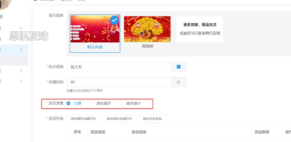 (3)派发速度:匀速:在设置的时间里平均匀速的发完,设置的红包个数一定会发完;