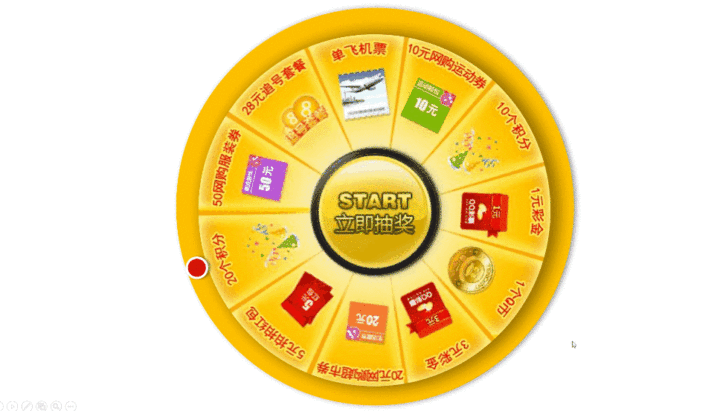 经典的抽奖方式,熟悉简单,操作起来按开始停止即可,是否中奖一目了然。模拟大转盘和跑马灯的抽奖效果,点击开始转盘就会旋转/亮灯,转盘/灯停下来的地方就是中奖的奖品。