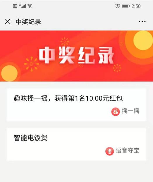 当前游戏不可重复:只要用户在 摇一摇 游戏中未获奖,就可以参与;