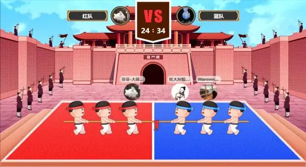 - 每个队伍的成员需要一起用力摇动手机,代表自己的队伍向前“拉绳”。