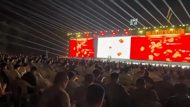 大屏上,财神爷挥袖撒出漫天红包、金币、元宝,参与者在手机端疯狂点击“抢红包”,抢到即中奖,奖金实时到账。