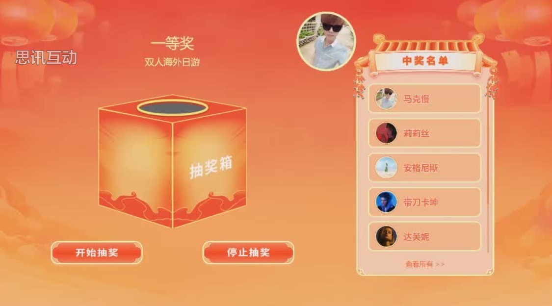 大转盘抽奖无需用户扫码,现场用户点击开始、结束即可进行滚动抽奖,操作便捷,适合快速调动现场气氛。