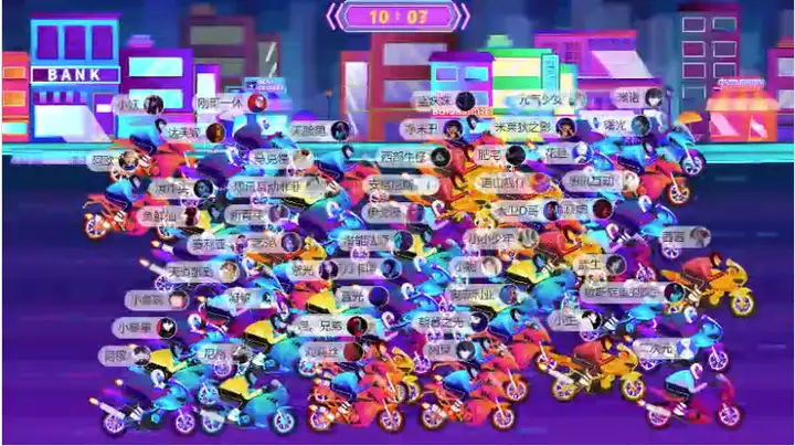大屏霓虹赛道上,摩托轰鸣、尾焰喷射,
