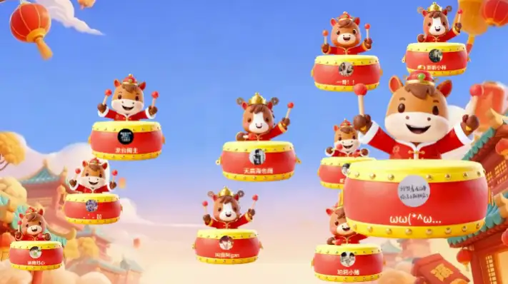 点击屏幕疯狂敲打“年兽”,敲得越多,排名越高!红灯笼、爆竹、福字背景齐上阵,年俗氛围一秒拉满。