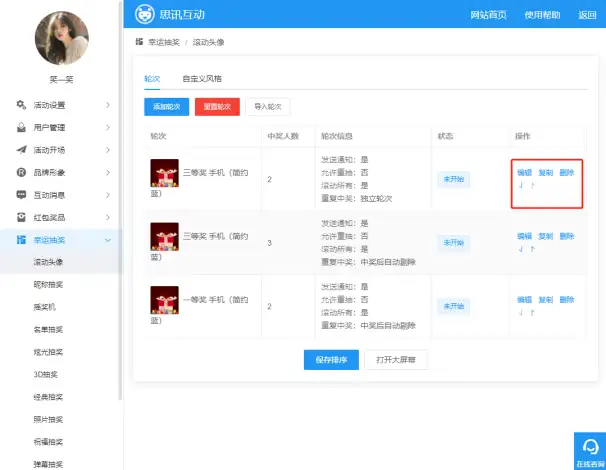 1滚动头像抽奖后台设置