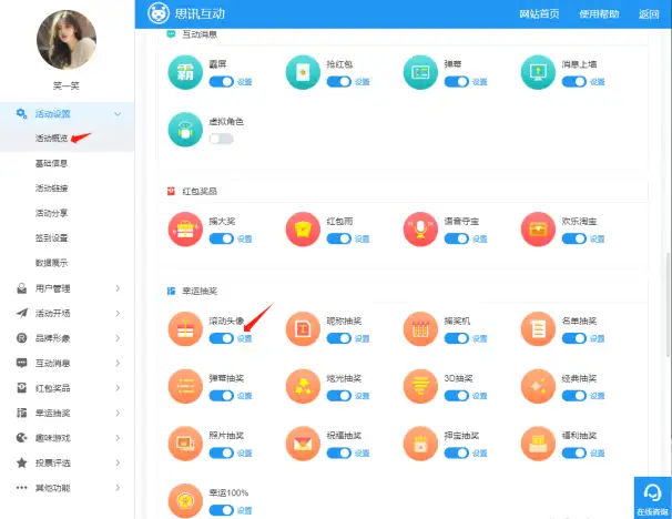 (1)如图1,依次点击活动概览->滚动头像抽奖”,进入滚动头像抽奖设置页面。