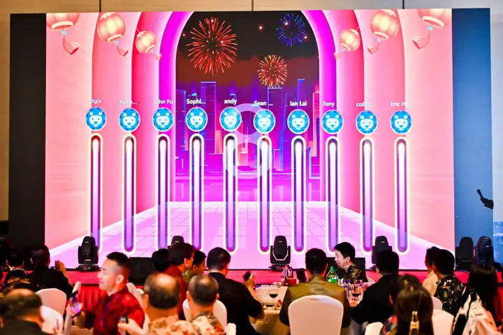 为什么大家玩不腻? 因为它们把抽奖和游戏结合在了一起。以前抽奖是“听天由命”,现在是“手动争天命”。全场几百号人盯着大屏幕,疯狂摇动手机,那种整齐划一的频率和呼喊声,瞬间就能把年会气氛拉满。对于策划者来说,你不需要请昂贵的演艺团队,这几分钟的互动就是全场的高潮。
