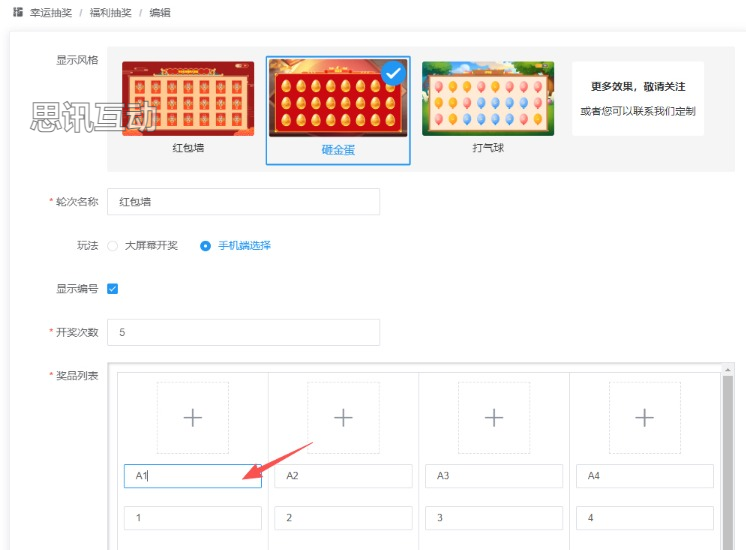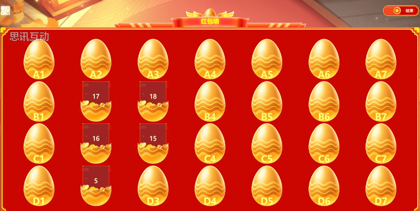 在福利抽奖展示的红包、金蛋上新增自定义编号功能,使抽奖过程更加有序灵活。参与者能够明确自己抽取的红包或金蛋编号,增加抽奖的仪式感与可追溯性。