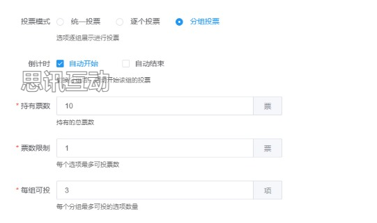 我们简化了投票设置流程,去除了繁杂的投票类型设置,统一为持有票数、票数限制的设置。这一改变让操作更加简洁明了,无论您是举办小型内部评选还是大型公开投票活动,都能快速精准地设定投票规则,确保投票过程的公平公正。
