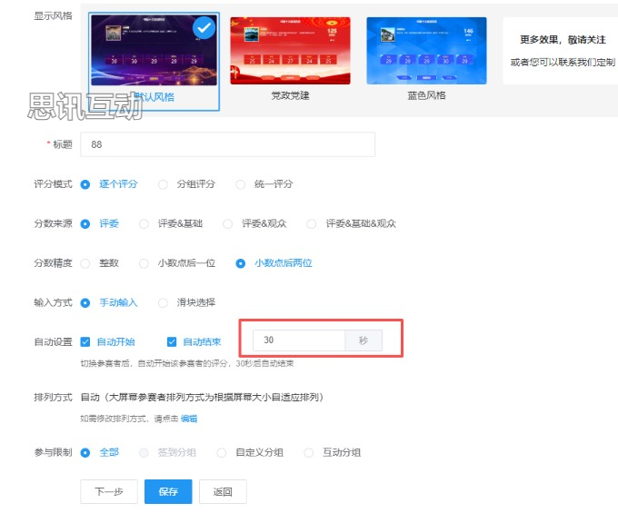 为了增加投票活动的紧张感与趣味性,我们新增了评分倒计时功能。您可以设定评分的有效时间,提醒参与者及时完成投票。